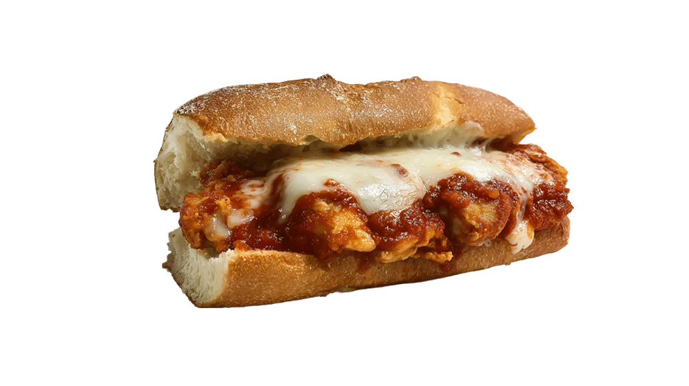 - Finishing Touches: The baked chicken is dipped in our marinara, placed on D’Amato’s bread, and topped with provolone and imported grated Parmesan cheese from Greco and Sons. A final toasting in the oven melds the flavors perfectly.